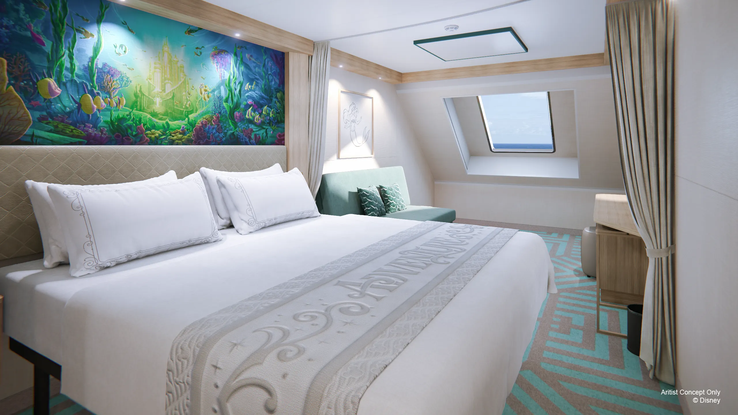 Relax in luxurious accommodations featuring enchanting details inspired by the undersea wonder of The Little Mermaid, the royal elegance of Valaskjalf from the Thor films and the vibrant allure of the Sultan’s Palace from Aladdin. Each stateroom offers sweeping ocean views from your own private balcony.