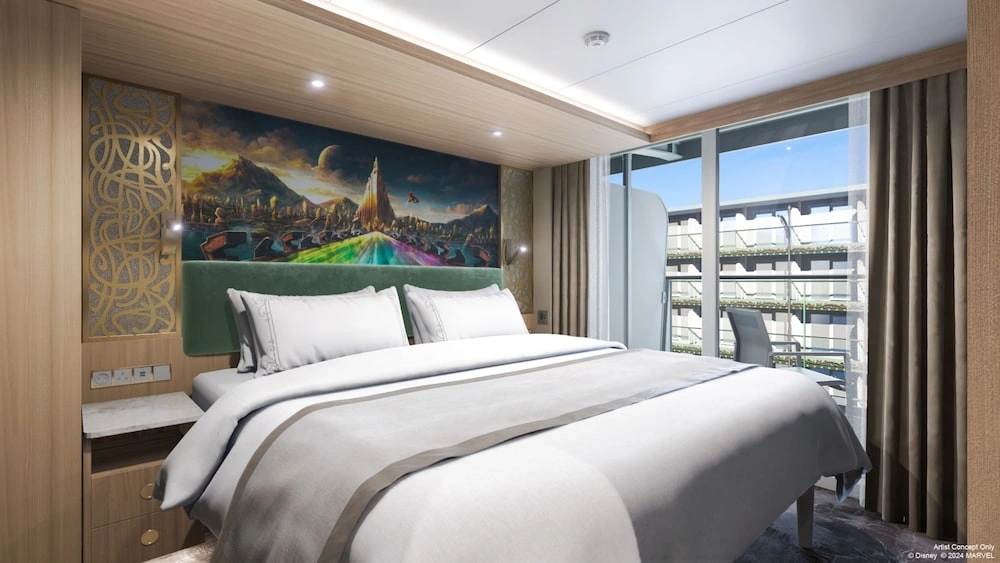Relax in luxurious accommodations featuring enchanting details inspired by the undersea wonder of The Little Mermaid, the royal elegance of Valaskjalf from the Thor films and the vibrant allure of the Sultan’s Palace from Aladdin. Each stateroom offers sweeping ocean views from your own private balcony.