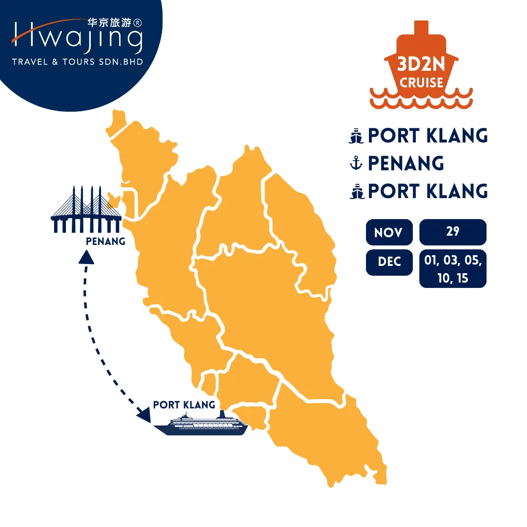 • Port Klang -> Penang -> Langkawi -> Port Klang