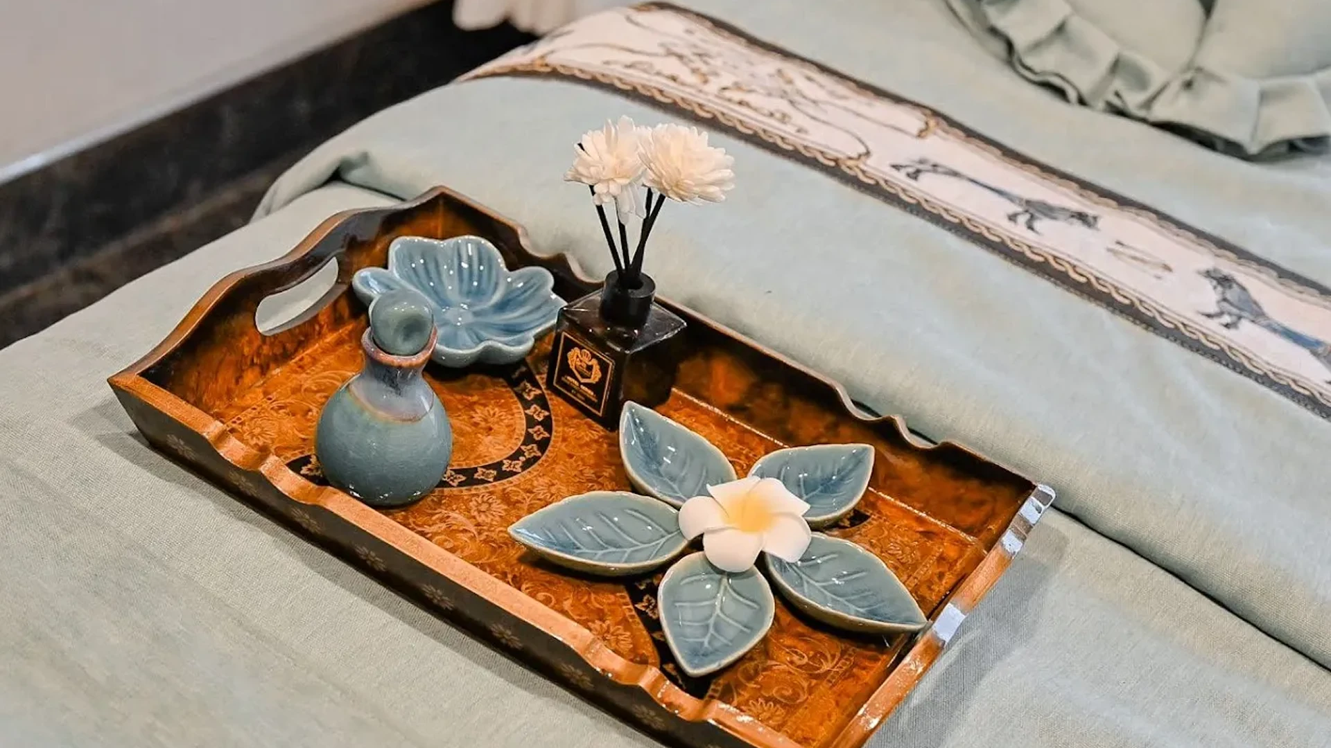 With Twin bed (can combined to Double Bed), Living Room, Bathroom, Jacuzzi Bathtub shower facilities, bath amenities, TV, refrigerator, electric kettle, telephone, safe box, writing desk, and 100% fresh air ventilation.