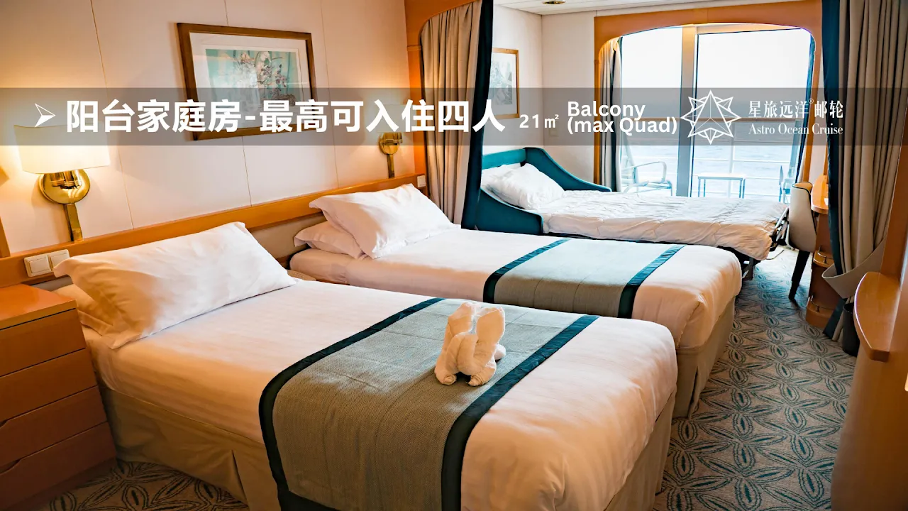 Rooms for families, friends and couples, featuring Inside, Oceanview, Balcony or Suite.