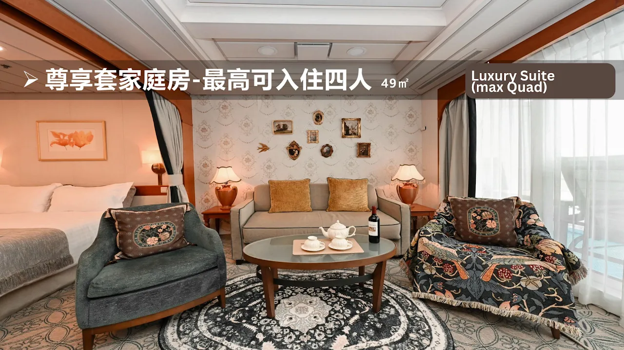 With Twin bed (can combined to Double Bed & with Double sofa bed), Living Room, Bathroom, Jacuzzi Bathtub shower facilities, bath amenities, TV, refrigerator, electric kettle, telephone, safe box, writing desk, and 100% fresh air ventilation.