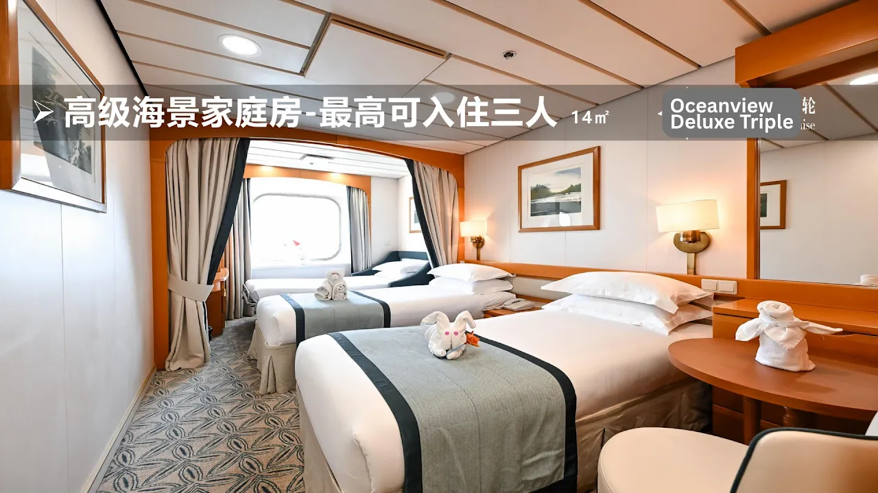 With Twin bed (can combined to Double Bed & with single sofa bed, Bathroom, Bathtub shower facilities, TV, refrigerator, electric kettle, telephone, safe box, writing desk, and 100% fresh air ventilation.